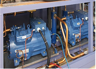 以加熱•冷卻輸出控制變頻器與調節電子膨脹閥,控制各區間的冷媒量 來調節被浪費的加熱量及控制冷凍機來實現節能。(變頻控制為選項) |